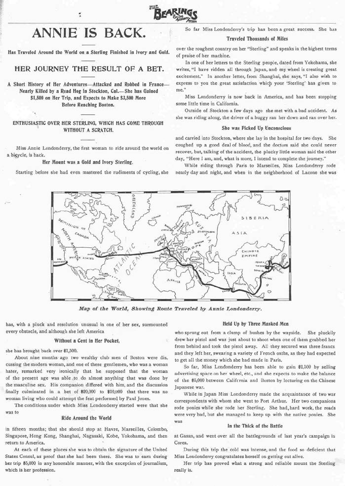 articles about Nelly said mentioned Annie Londonderry and bikes and... I got it. I was