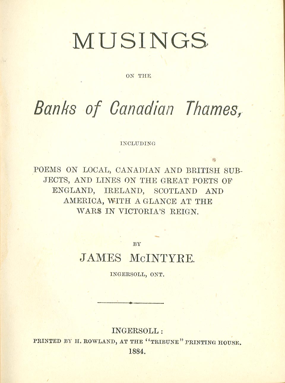 throw) away from Ingersoll, Ontario. Our Ingersoll has a well-known poet by the
