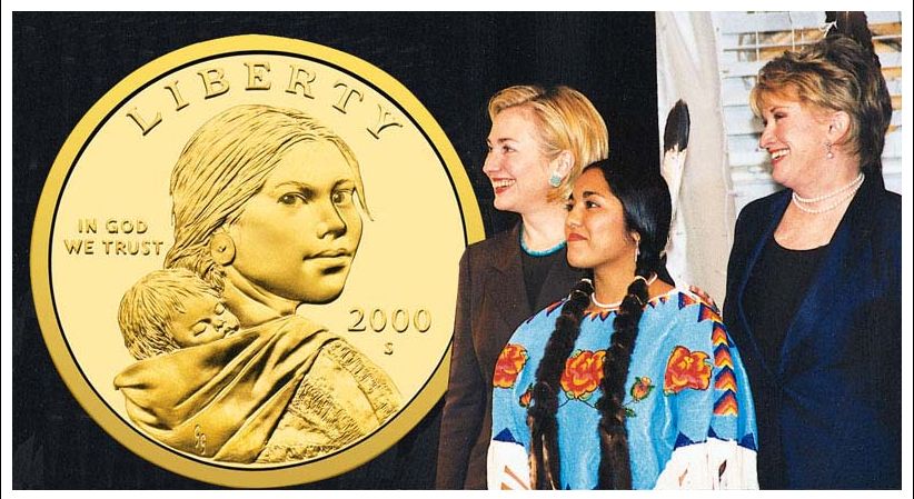 depicting Sacagawea and her son, Jean Baptiste Charbonneau. The face on the coin