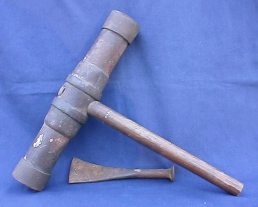 At first I thought the tools might be augers with a T-handle but the metal fittings on the