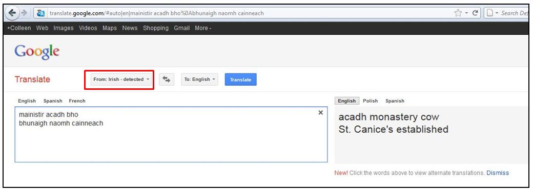 into Irish. By translating various Irish words, I was then able to get a fair idea what the