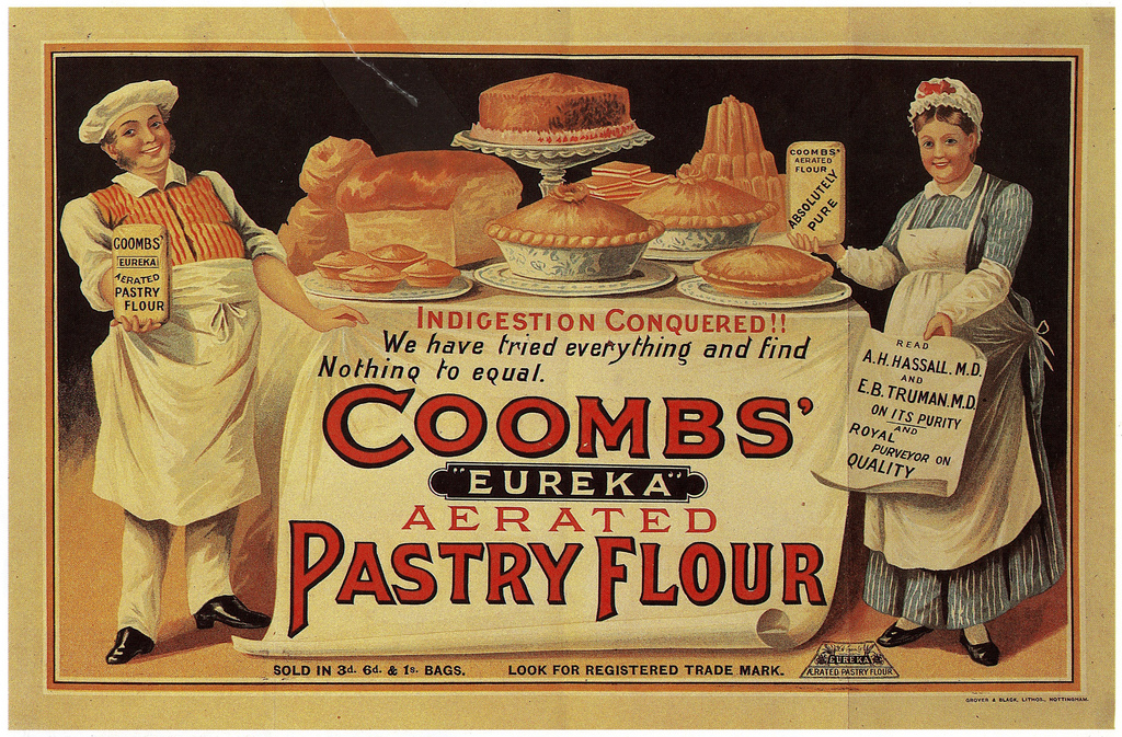 In the 1890s several manufacturers promoted their products in order to get them requested by name in shops. Patent medicines and household goods were heavily advertised. The baking powder made by George Borwick and Sons (a factory was in Croydon) was promoted using this image (above).