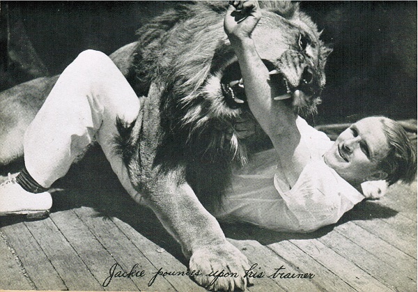 Jackie was the second lion used for the MGM logo. He was selected because he was a look a like for “Slats”. “Jackie” was born circa 1915 and was captured as a cub in the Nubian dessert. He spent much of his life in Hollywood as a performer in jungle pictures, eventually chosen to appear on the MGM logo.
