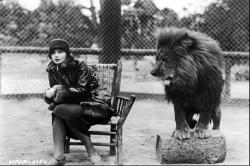 ***** I recognized the MGM lion right off, so the main issue was determining the date of the photo. I google-imaged "mgm lion filming" and your image (flopped L-R) came up, and eventually by hovering over each image, I found the 1924 date in a filename. Googling "MGM lion lucky" turned up the story of Jackie, along with the later dates that Jackie was used.