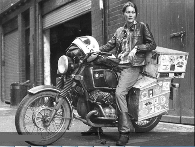 efficient and I enjoy the freedom.” –Elspeth Beard (photo of Elspeth shortly after returning home by Peter Orme) (via) She also made her BMW’s lockable top-box and panniers out of riveted aluminum sheets while living and working in Sydney during her around-the-world trek. It was a necessary stop when the funds she’d scraped together as working student ran out– she’d end up spending a total of seven months apprenticing with a firm in Sydney.