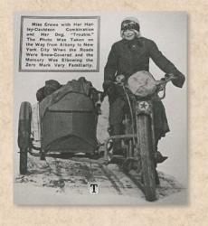 A few days later Della Crewe, Trouble and their 1914 Harley-Davidson twin with sidecar sailed for Jacksonville, Florida, with plans to tour the South, Cuba and South America.