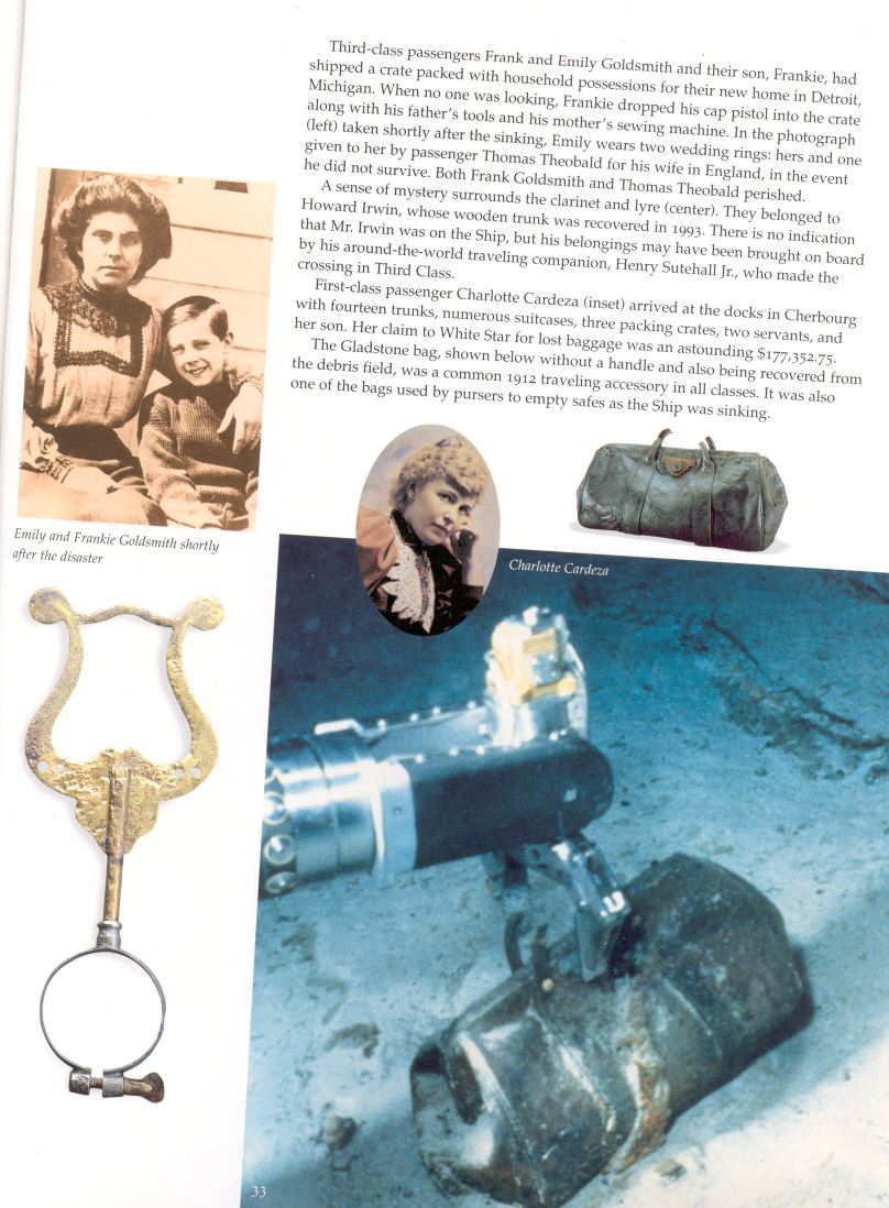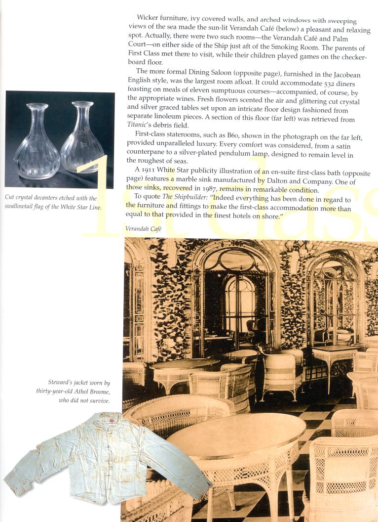 Colleen…the historical museum of Miami just finished a 6 month run of the Titanic Artifact Exhibit ….last summer Laurie and I did the tour...whoa!...those people in steerage never had a chance….we purchased the artifact guide book and I scanned some pics for you. Rick Mackinney