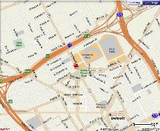 Answers: 1. Northeast corner of Woodward & W. Elizabeth Street, Detroit, MI, across the street from the Fox Theatre at 2211 Woodward Avenue.