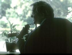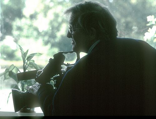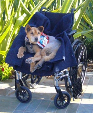 Dennis Bussey's Dog Baxter Here's my picture taken behind the hospice where I have become a living legend. |