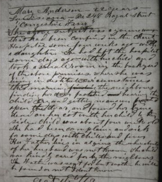 New Orleans' Coroner's Report - October 12, 1863 Mary Anderson – 22 years – Louisiana