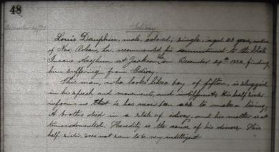 Louis Dauphin, male, colored, single, aged 23 years, native of New Orleans, La. recommended