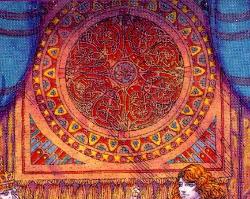 | Ok! I am stumped. My observations: Picture of an old(er) man wearing a gold crown dressed in voluminous robes sitting on a chair/throne. Beside the throne are boxes containing objects that could be treasures/property. A younger man is seated across from the older man with a board game using three columns and six rows, the younger man is dressed more lightly, is well built and has a light beard. He is holding a game piece and showing it to the older man. Both men have a cup on the floor with a vessel that may hold a beverage. A young woman with long blond hair is watching the men. She is dressed in robes, wearing sandals, and sitting on a rug or fur skin. On the wall is a tapestry with a circle enclosing eight circles. There are blue draperies pulled back framing the tapestry. On the floor in front of the woman is a brazier with fire. Behind the older man is an elevated brazier with fire. Interpretation: 1. the room is cold. 2. The younger man is of a lower status than the older man. 3. The woman is the daughter of the older man. 4. The older man is a king. 5. The woman is a princess. 6. The princess has a vital interest in the outcome of the game. 7. The younger man is playing a game with the king, if he wins, he will marry the princess. 8. The younger man is either explaining the game to the king, not very likely since it is most likely that the game board belongs to the king. Most likely the younger man is claiming the game by capturing the critical piece ( The king in chess. ) 9. The tableau presented in this picture could be from a fantasy story, or, an illustration of a long ago moment in history. Problems in solving this quiz. 1. I could not find the picture, so I have no context to work from. 2. In the history of chess I could not find an example of a 6 by 3 board game. So, maybe a clue from you would help! Tom Collins ***** G'job Tom! You've figured out everything except the answers to the three questions. Hint: What is the ethnic background of these people? - Q. Gen. |