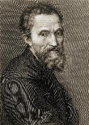 | Michelangelo, who died in Rome in 1564, was buried beneath a monument with allegorical figures of Sculpture, Architecture and Painting, designed by Giorgio Vasari. Michelangelo's tomb served as the model for others, such as the tomb of Galileo, who died in 1642 (his monument was made by Giovanni Battista Foggini). The figure of architecture - the one on the right - is by Giovanni dall' Opera. The central figure represents Painting and is by Lorenzi ; while the third represents Sculpture and was executed by Cioli. |