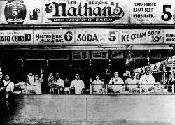 | Nathan’s Famous was founded by a Polish immigrant, Nathan Handwerker, and his is truly an authentic “only in America story.” He started his business in 1916 with a small hot dog stand in Coney Island, New York. He sold hot dogs that were manufactured based on a recipe developed by his wife, Ida. In the over 96 years that have passed since opening day, Nathan’s has gained worldwide recognition for the unequaled quality and taste of its product. Today, Nathan’s has gained a reputation for being among the highest quality hot dogs in the world. Nathan’s popularity was almost instantaneous, and in its earliest days had legendary characters such as Al Capone, Eddie Cantor, Jimmy Durante, and Cary Grant as regular customers. It gained its first international exposure when President Franklin Delano Roosevelt served Nathan’s Famous hot dogs to the King and Queen of England in 1939. Later, Roosevelt had Nathan’s hot dogs sent to Yalta when he met with Winston Churchill and Joseph Stalin. Years later, Nelson Rockefeller, Governor of New York, stated that, “No man can hope to be elected in his state without being photographed eating a hot dog at Nathan’s Famous." Politicians, show-business personalities, and sports celebrities are often seen and photographed munching Nathan’s dogs, and heard singing its praises. Barbra Streisand, actually had Nathan’s hot dogs delivered to London, England for a private party. A trip to Nathan’s was the focus of a Seinfeld episode created by comedian Jerry Seinfeld. More recently, the ex-mayor of New York City Rudy Giuliani declared Nathan’s the “World’s best hot dog.” Shortly after that, Nathan Handwerker was named to the city’s top 100- joining the ranks of Joe Namath, Irving Berlin, Andrew Carnegie, Joe DiMaggio and others. Even Jacqueline Kennedy loved Nathan’s dogs, and served them at the White House. In his final last will and testament, actor Walter Mathau requested Nathan’s hot dogs to be served at his funeral – they were! The point is Nathan’s is not just a hot dog, it has history and it is Americana! Last year there were over 435 million Nathan’s Famous Hot Dogs sold! Today, Nathan’s is sold and enjoyed in all 50 States and sold at over 40,000 food service and retail outlets. |