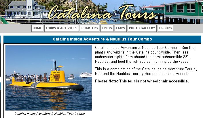 The Nautilus logo on the submarine's conning tower was the best clue to the location of the photograph. If you Google on words such as Nautilus, yellow submarine, etc., you will come up with a number of sites pointing you to Catalina Tours at http://www.catalinatours.net/.