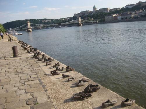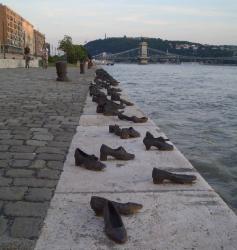 1. Shoes on the Danube Promenade, commemorating the Jews who were shot into the Danube by the Arrow Cross militiamen during 1944-1945. 2. CommerzBank, EuroNet ATM are two. 3.