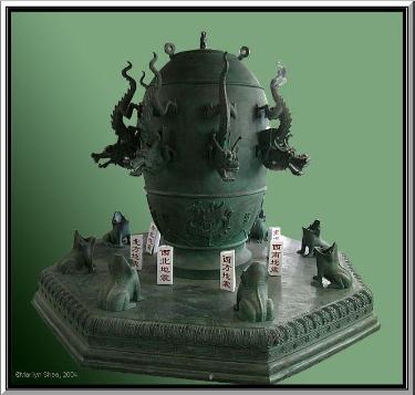 So I googled "drawing of ancient Chinese steamer" and clicked on wikipedia. There was a very fascinating article on all of the ancient chinese inventions including a photo of a seismometer, "A replica of Zhang Heng's (78–139 AD)seismometer that employed a pendulum sensitive to inertia of ground tremors; while placed in Luoyang in 133, it detected anearthquake 400 to 500 km (250 to 310 mi) away in Gansu". Its a seismometer!